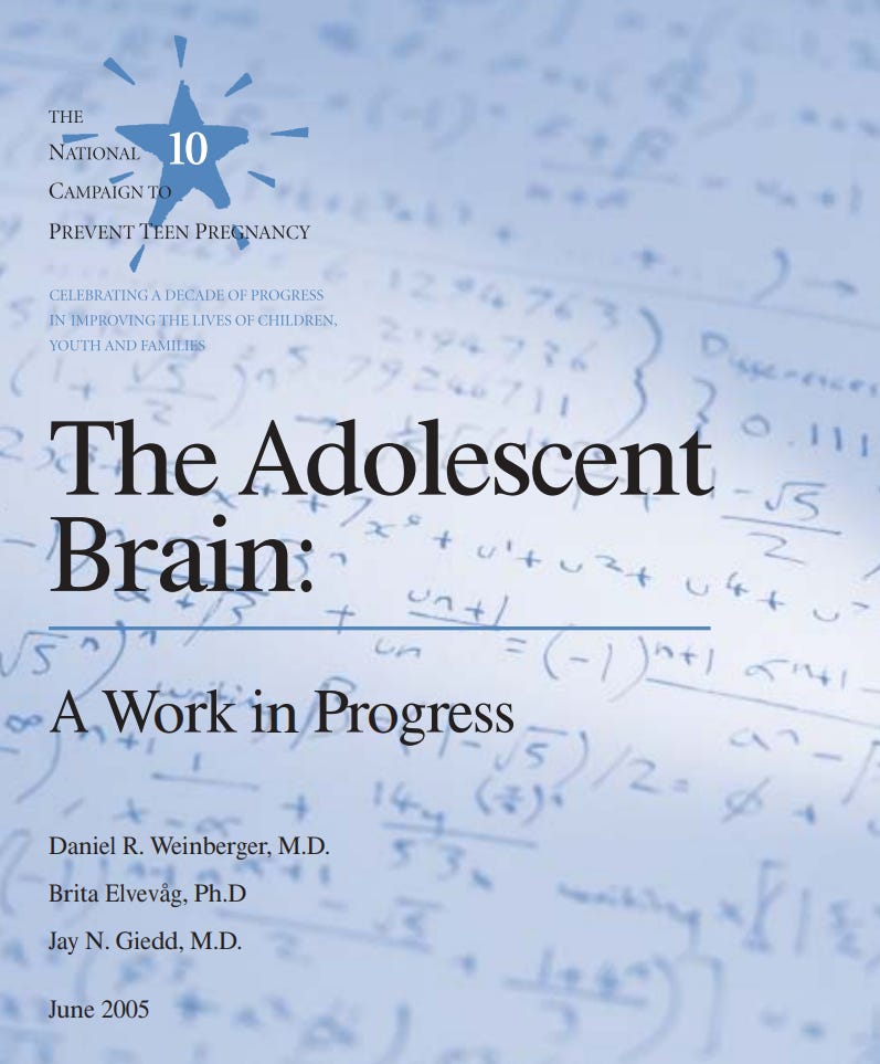 My wife got me Robert Sapolsky’s Behave (written in 2017) for Christmas, and in there he has a chapter called Adolescence; or, Dude, Where’s My Frontal Cortex. If you’ve read my first book, you know how this is going to go. Sapolsky’s chapter reads as if it was written by one of those mid-2000s “teen brain” activist-scientists.