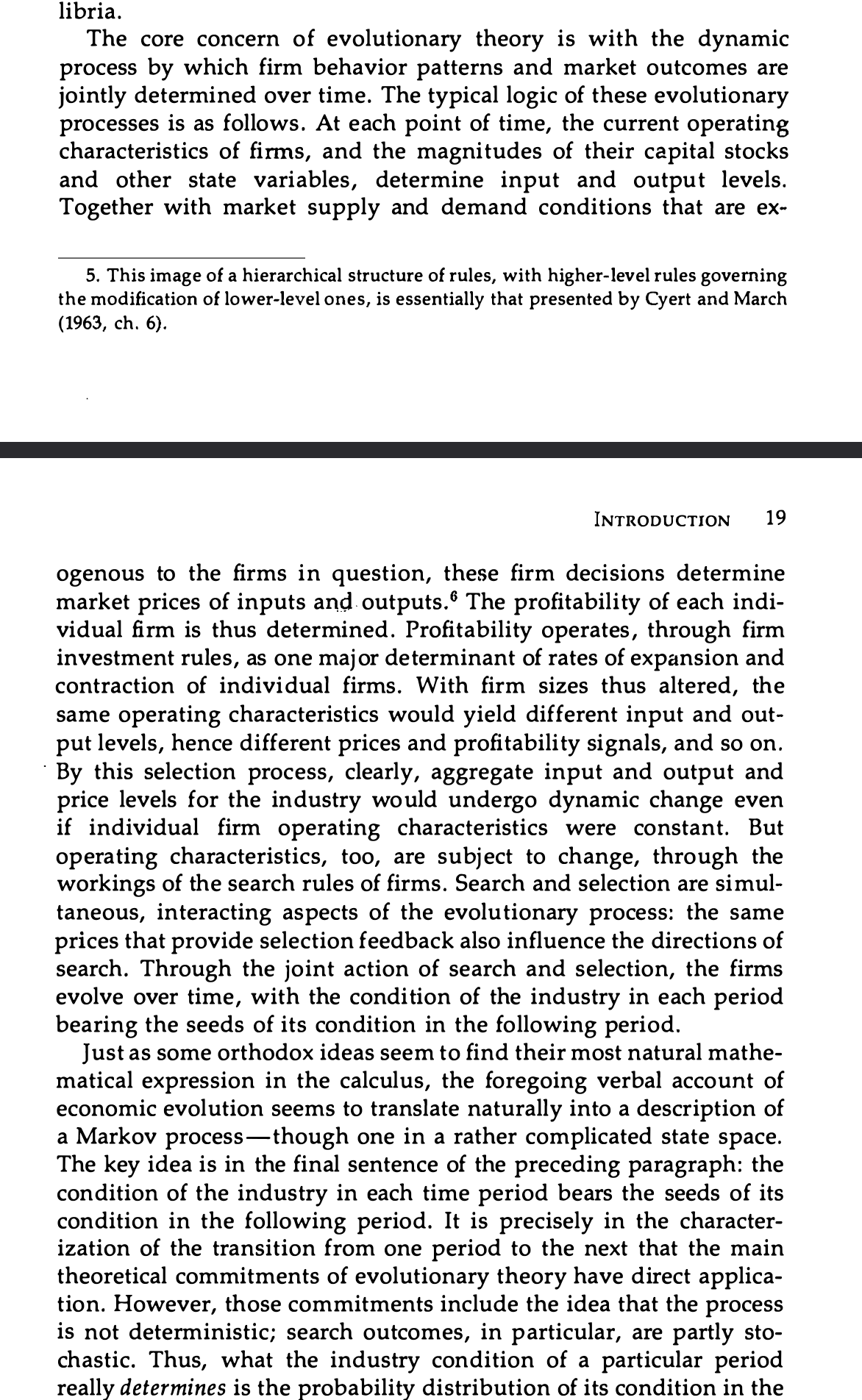A book from the 80s is credited with being seminal to the field of evolutionary economics. It promotes the use of Markov chains for modeling: