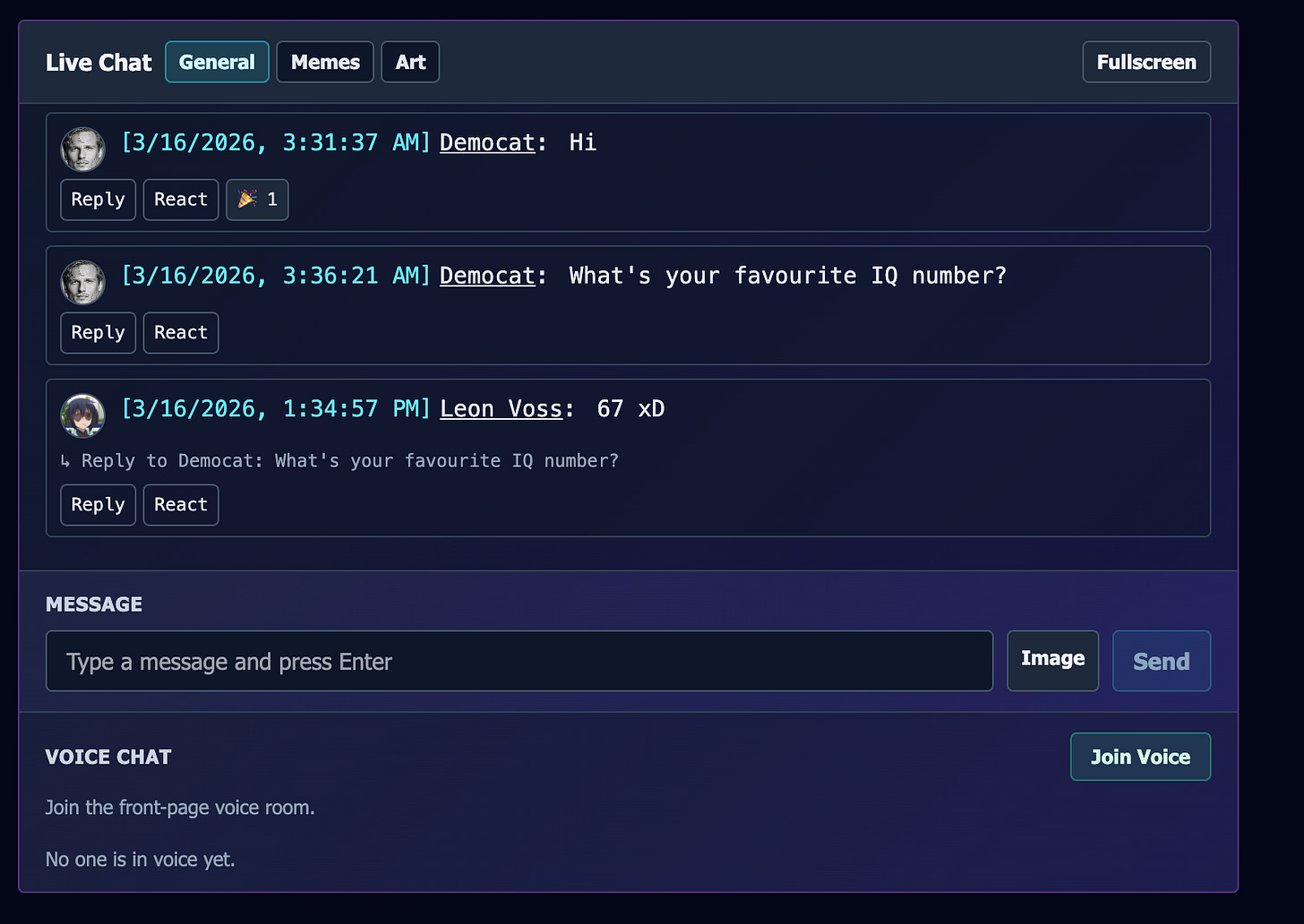 I’m going to try to replace my Discord with HBDForum. I have a number of reasons why. The first is that Discord supports medium form content, but the organization promotes shortform, and I don’t like how servers are walled gardens. At the bottom of HBDForum is a live chat and a voice chat feature.