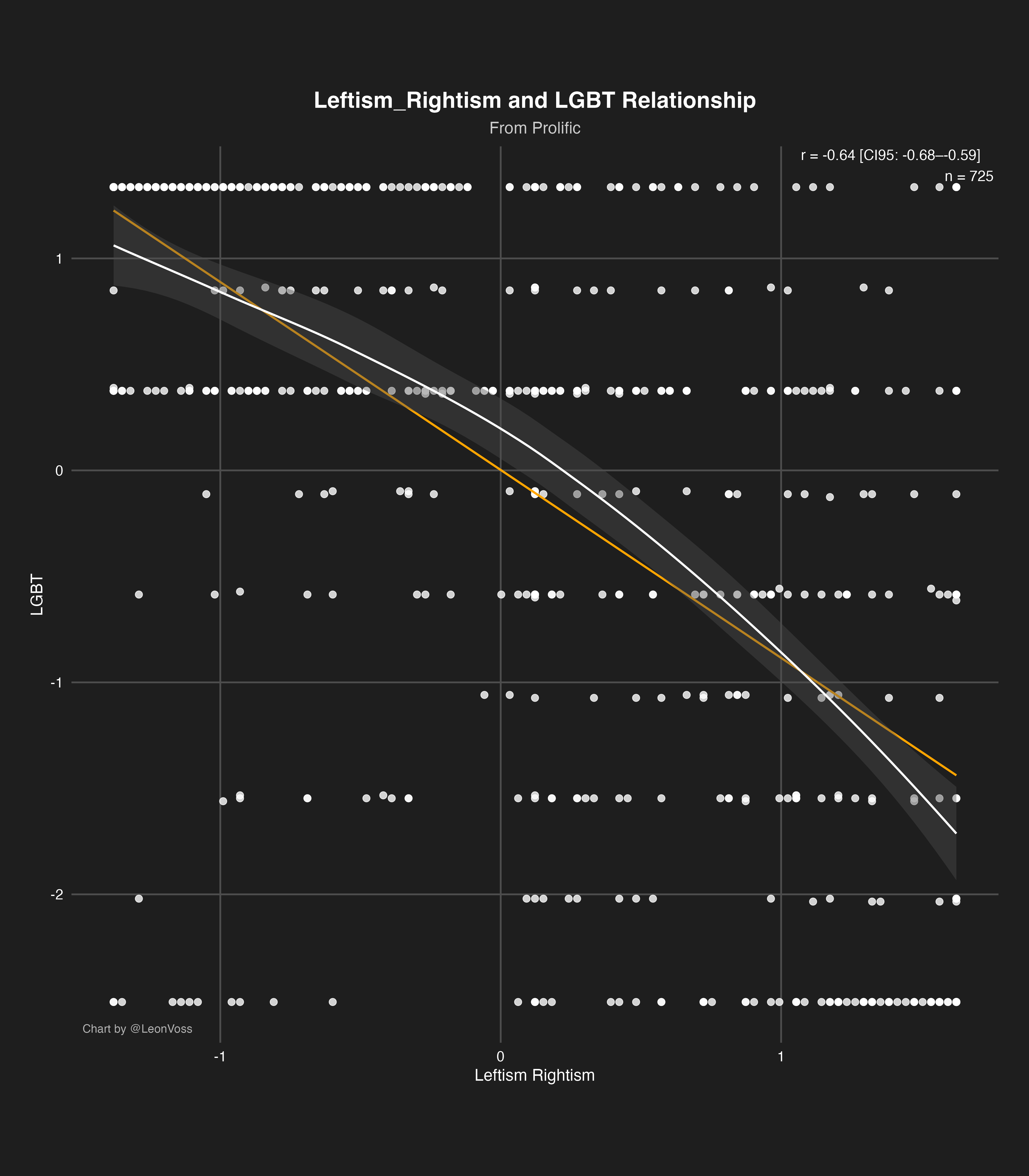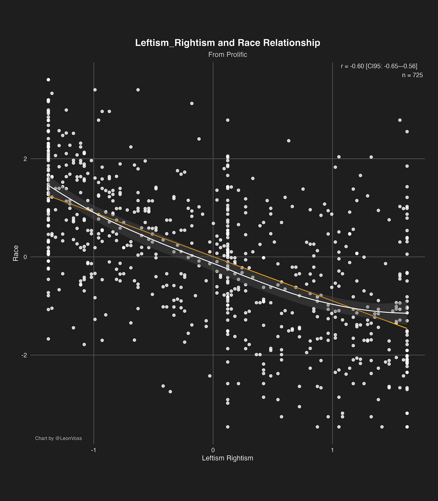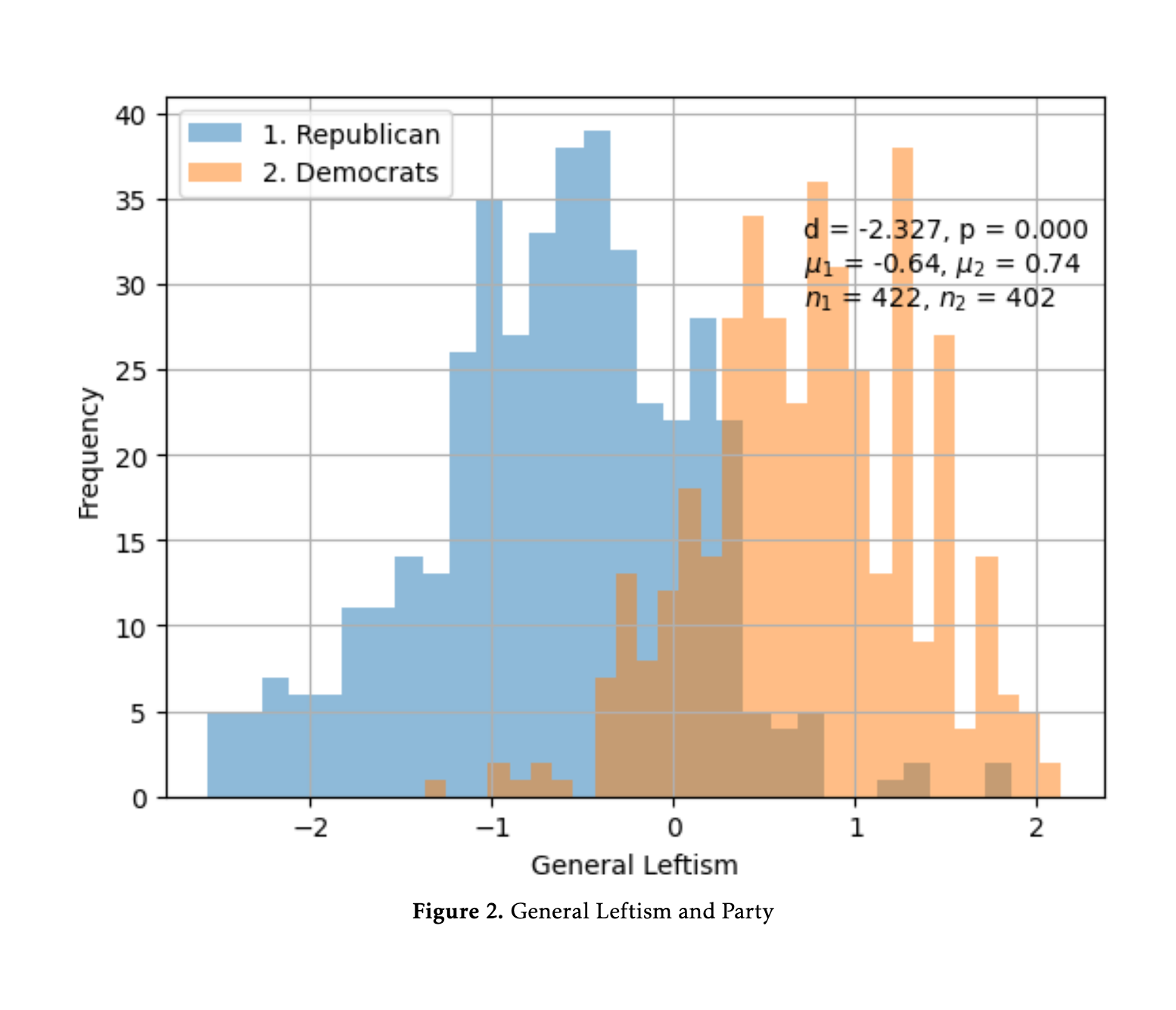 If you eye my general leftism scale, you do see that Republicans appear to be slightly more variant than Democrats, but maybe not as much more variant as they found with their 8 items.