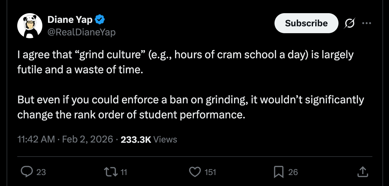 If you ban grinding, it’s probable that rank order within race won’t change. But rank order between race will change. Asians would only compose about 10% of a meritocratic Harvard class, instead of >50%. Their mean SAT scores would fall below whites. We know this because we know whites have more innate intelligence due to more unfalsifiable signals thereof, like Nobel prizes, inventions, and strong national economies. Where English IQ is set to 100, the ungrinded Chinese IQ is likely 95 to 97. With grinding they score between 100 and 102.
