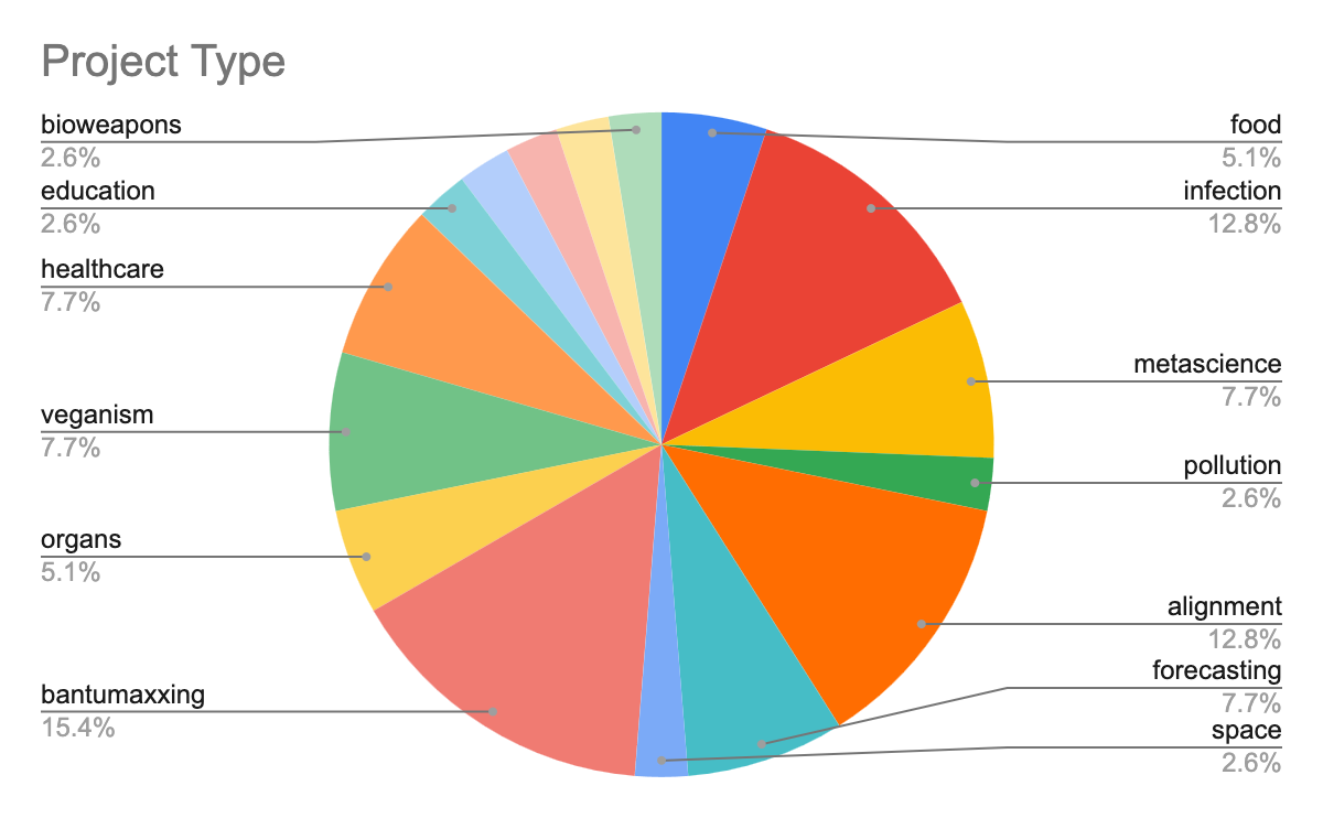 Anyway, enough on ethnicity. Here’s what’s being funded. I’d say at least 35% of the projects are a waste of time. That is, bantumaxxing, veganism, and alignment. Let me explain why.