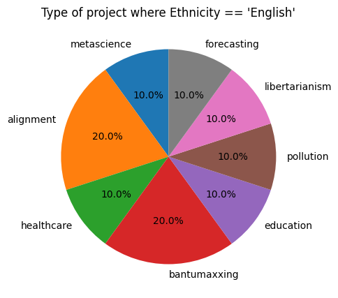I analyzed the ethnicity of the recipients as well as the project types in this spreadsheet here. As you can see in the pie chart above, the English are really punching above their weight. Where are all the Germans? Basically all of these English people were in the UK and the USA, which houses about 200 million Anglos collectively. Germany, Austria, and Switzerland collectively have about 95 million German speakers. If you throw in French speakers in the low countries, Switzerland, and France, you get 170 million French or German speaking Hajnaloids.