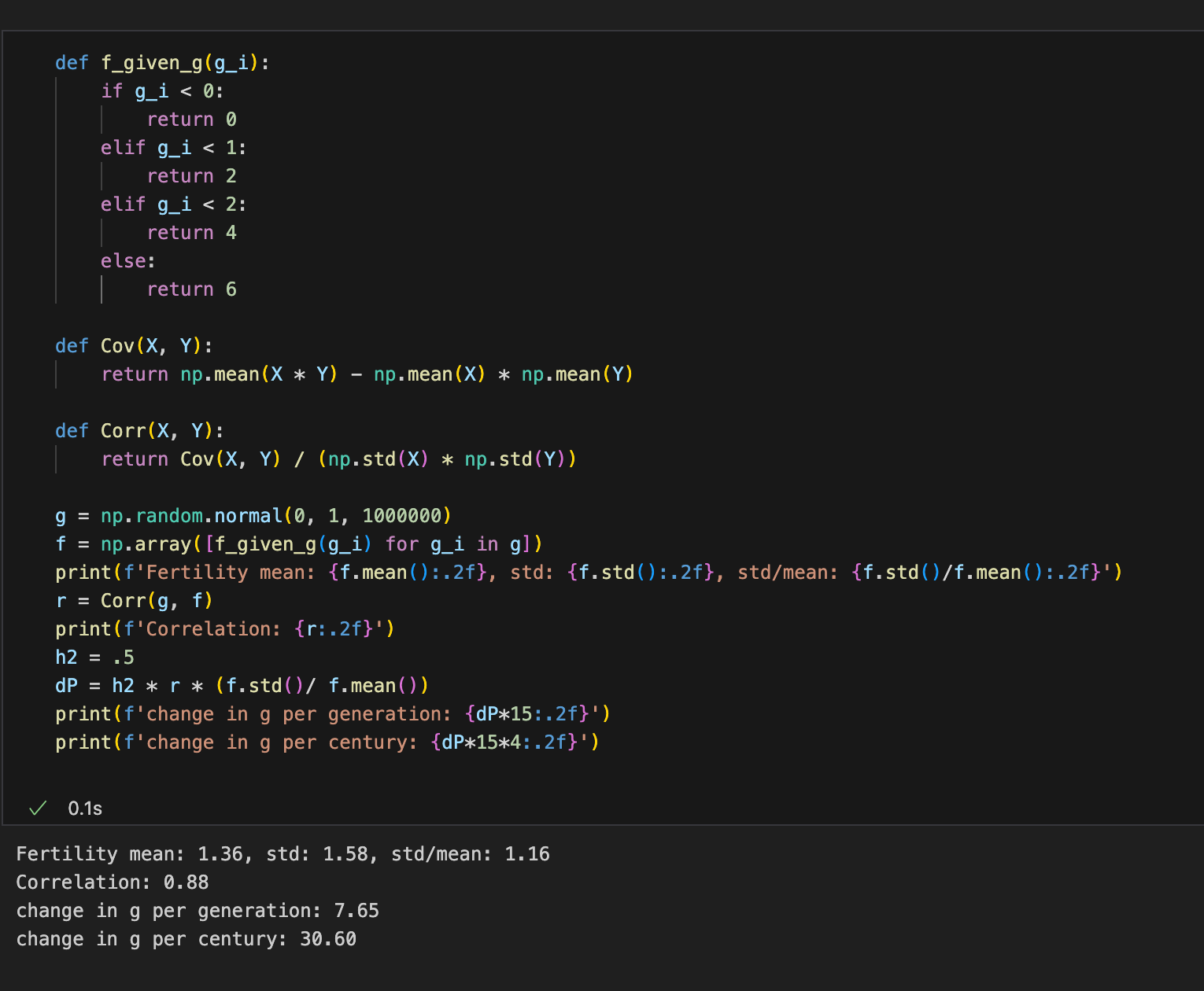 Instead, we lost about 10 points in the 20th century. 10 points is an understatement, because, as any economist knows, the real costs include opportunity cost! With a 15 point opportunity lost, we’re down 25 to 40 IQ points relative to the eugenics counter-factual.